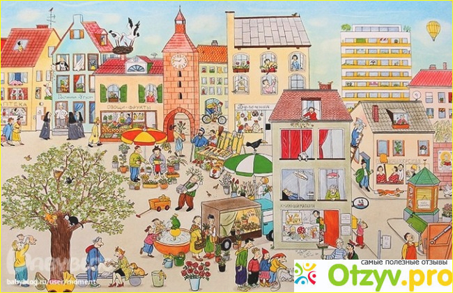 Содержание, в продолжение трех книг. продолжает рассказывать о жителях некого городка! Честно говорю, я пожалел , что мне не год-полтора.(Я очень рано начал читать, самоучка, можно сказать, начинал с Пушкина). Итак, книга рассказывает о жизни этого городка(инкогнито, городок без названия). Замечено, что дети , в большинстве своем очень любят эту книгу, в ней для детского восприятия очень очень много всего полезного. На каждой странице идут новые события, а если чтец на уровне , то тему книги можно продолжать и развивать.(у меня здорово получается читать эту книгу на ночь своему двухлетнему племяннику), я там такие истории создаю, даже Ротрауту такое не снилось. Вот сейчас пересмотрел эту книгу и снова-восторг! Уверен, что дети выросшие на таких книгах, тупыми точно не будут. Ничего не могу сказать о многих отечественных детских писателях и поэтах .(Мои два взрослых ныне сына . выросли на бесподобных произведениях Агнии Барто). Но эта книга интересна тем, что , повторюсь, здесь можно бесконечно развивать тему и обучать ребенка. Причем , даже с годовалого возраста. Например, на задней обложки книги изображены главные герои( их немного) и ребенок сразу их запоминает, если ем показать, а потом, уже в тексте, когда Вы ему поставите задачу отыскать этих героев, будьте уверены, ребеночок очень этим увлечется). Кстати, книги по своему функциональному предназначению так и называются-книги-гляделки.
