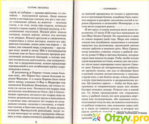 Если Вы читаете эту книгу, Если вы сомневаетесь в моих словах, потому что изображение не передает и половины сущности реального мира запахов, блестяще описанные в работе. Прочитав книгу, я пожалела, что этот писатель, который сможет объяснить, что так на самом деле, словами передать не может, не плодотворен, а стал известен только благодаря этой сложной истории.