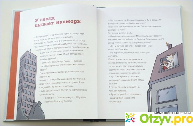 Книжка эта совсем не фантастическая. В книжке описываются самые обычные истории, в которых каждый узнает свою семью. Возможно именно поэтому она мне так понравилась мне и моему сыну. Произведение рассчитано на детей в возрасте от трех лет. Книжка наполнена прекрасными картинками, добрыми и яркими, которые малыши могут долго рассматривать и изучать. Мой сын очень любит читать эту книжку на ночь. Отлично засыпает под нее. Но больше всего малыш любит, когда книжку читает папа. Наверное потому что в книжке очень много диалогов именно отец- сын. И я считаю что это правильно, потому что отец играет огромную роль в жизни ребенка, особенно сына. После прочтения книги с ребенком можно обсудить рассказы, разобрать их по частичкам и задать некоторые вопросы, такие как " А что ты думаешь по этому поводу?, " А как бы ты поступил с той или иной ситуации?" ощущ ение значимости. Такие вопросы развивают у ребеночка логику и дают полное ощущение собственной значимости. Дети привыкают к тому, что их мнение редко учитывается, их особо и ехать на дачу. Мы просто говорим малышам "Собирайся, через 2 часа мы едем копать картошку". с помощью таких вопросов это чувство пропадает и ребенок знает что его мнение уважают. Читая рассказы важно акцентировать внимание на важных моментах. Следует напоминать, что нельзя брать чужие вещи, нужно слушаться и прислушиваться к маме, необходимо убирать игрушки, после того, как закончил в них играть.