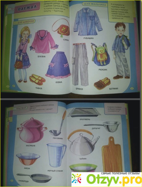 Что мне больше всего понравилось в книге, что достаточно подробно описаны части тела человека, отдельно есть страничка где полностью тело человека, а отдельно где просто голова и указаны все части. Очень красивые животные изображены на картинках. Фрукты и овощи изображены в книге те, которые мы привыкли кушать во время сезона, и которые нам хорошо знакомы. Также есть детская площадка и различные игрушки, эти странички точно понравятся каждому ребенку.