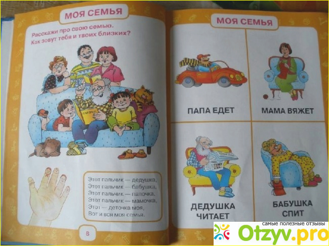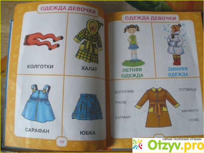 В книге сразу понятно, что нарисовано и у ребенка не будет проблем или сложностей узнавать предметы. Книга действительно очень подробная и хорошо продумана. Ребенок может правильно понять какие есть члены семьи и кто из них кто. Какие есть животные и к каких частях света они живут. Какие есть предметы, которые ежедневно нас окружают. Описаны поры года и какую одежду необходимо надевать, чтобы хорошо себя чувствовать в это время. Какая есть одежда и средства личной гигиены, к какой комнате в доме они относятся.