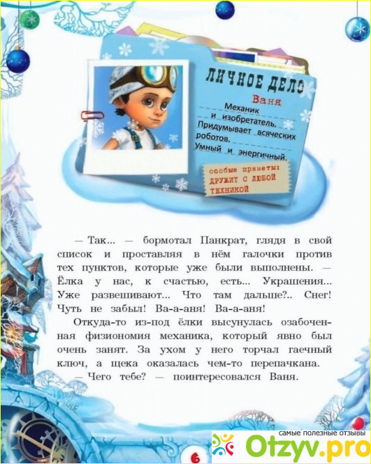 Сюжет интересный, ведь героям приходится в канун самого праздника отправляться в захватывающее путешествие. Да и сами герои необычные. Представьте себе говорящего пони, да еще и одетого в пальто. Разве может такой персонаж не заинтересовать ребенка? А его попутчицей выступает замечательная девочка Маруся. За один день нашим героям придется пролететь сквозь целый год и на своем пути повстречать двенадцать персонажей. Интересный прием - личное дело каждого персонажа. В нем кратко и ярко описан герой и указаны все его достоинства.