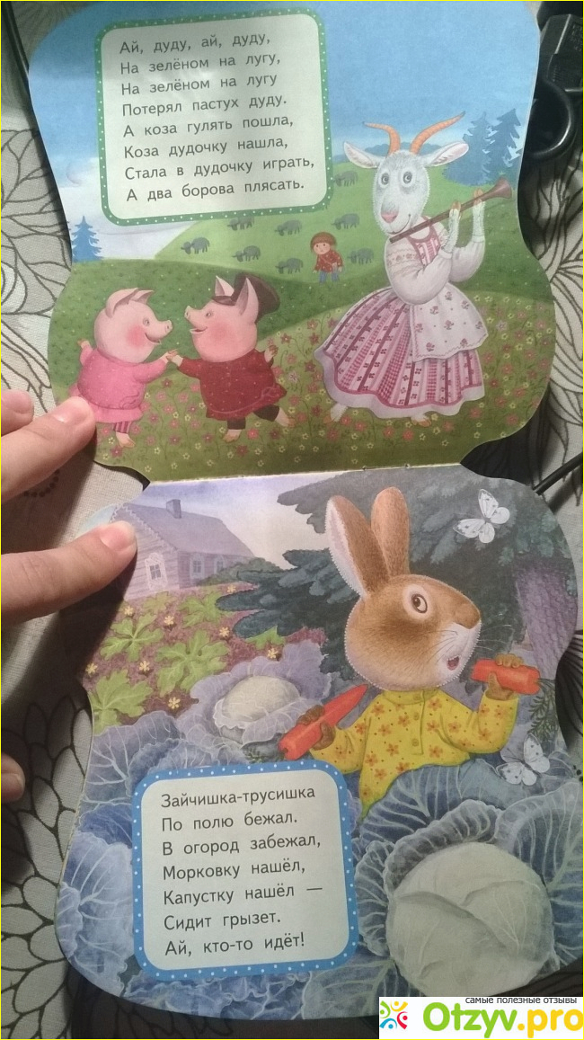 Давать малышам эти книги надо осторожно. Моя дочка потянула в одну сторону, я у нее решила книжечку забрать мягко, ну и уже раз - и разрыв бумаги. Ну конечно, а что следовало ожидать. С другой стороны не стоит "трястись" над книгами, я думаю, но все-таки если хотите подольше читать потешки, лучше давайте малышу под присмотром, а то книга будет съедена.
