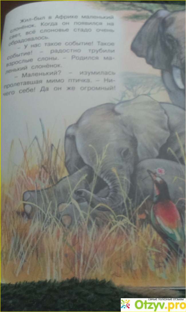 Рекомендую вам к приобритению для ваших маленьких деток эту милейшую книгу. Интересная история о буднях слонов с замечательными реалистическими иллюстрациями. Благодарю вас за оказанное небольшое внимание к моему отзыву. Надеюсь, что мой отзыв был вам полезен. До новых встреч на страницах отзывов!