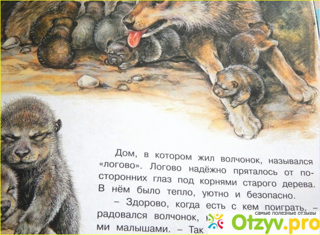 Сама история, что выложена на страницах книги, как уже говорилось, очень познавательна. Собственно, даже название книжки говорит само за себя - она о жизни волчонка от рождения и до взросления. При чем выложена не "сухими" фактами о таких хищниках, как волки, а в достаточно интересной форме, что не может не заинтересовать маленького почемучку. Книга "Приключения волчонка" написана в виде красочной истории с приключениями, в которых участвует волчонок. Слог написанного настолько доступен ребенку, что позволяет легко запомнить все, что происходит с героем рассказа.