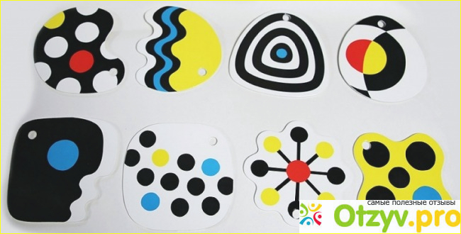 А теперь я вам хочу рассказать, что же изображено на каждой картинке в этой книжке. Лично для вам все эти картинки будут казаться просто самой обычной абстракцией. так как тут вы найдете и разные кружочки, треугольники, ломаные лини. А еще хочу обратить ваше внимание на то. что основным цветом в этой книжке является черный. И это не случайно, так как ребенок видит первые месяцы очень хорошо именно этот цвет.