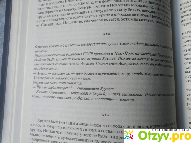 Здесь много юмора, самоиронии и критики, которая может шокировать российского обывателя. Ведь Познер из тех, кого называют "человеком мира" - не русский и даже не россиянин (не признающий и не чувствующий себя таковым). Есть неприятные слова в сторону нашего национального менталитета и его основы - православной религии. Поэтому я бы не стала советовать эту книгу воцерковленным людям, для которых каждое слово православных пастырей является исключительной и непререкаемой истиной. Иначе книга может вызвать бурю негатива, которая захлестнет и не отпустит - другими словами, введет в грех.