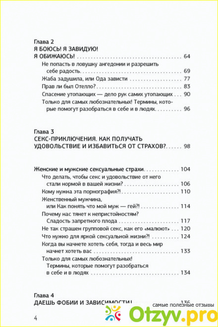 Книга небольшого объема, но разделов в ней пять. Каждый из разделов поднимает до десяти вопросов. Из этого можно сделать вывод, что ответы вы получите четкие, лаконичные, без больших ненужных вступлений и рассуждений "вокруг, да около". Касается это любой темы, даже самой интимной. В главе секс приключение вы найдете не один вопрос, который мы иногда задаем сами себе, но озвучить боимся. Ответы на них прямые и честные. Изложены они простым доступным языком. Нет никакой заумной лексики, разговор, как с хорошим знакомым, которого вы достаточно хорошо знаете. Все сказано так, что хочется доверять каждому слову. И это все при том, что подавляющее большинство примеров и советом совершенно не являются чем-то новым, то есть открытием для вас не станут. Просто сказаны они так и включены в такую ситуацию, что лично мне не один раз приходила в голову мысль :" А ведь я все это знаю. Почему же я его не применяю?".