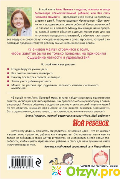 Автор этой оригинальной в чем-то книги известный педагог и психолог Анна быкова. До этого выходили и другие книги автора, так что благодаря им данное издание довольно быстро нашло своих почитателей. В этом издании предлагается Быковой свой оригинальный взгляд на проблемы развития ребенка.