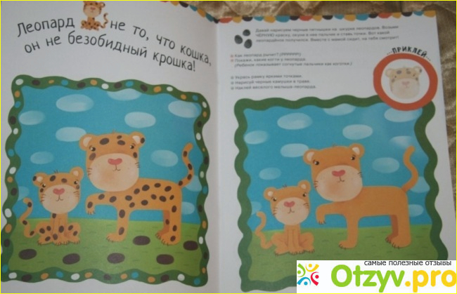 Данная книжка будет просто находкой для тех родителей, которые любят заниматься со своими детьми. Родители будут читать текст ребенку, а он будет рисовать своими пальчиками так, как считает нужным и правильным. Книжка рекомендована детям в возрасте от одного до трех лет, но, как показала практика, что даже и в шесть лет, эта книга также интересна деткам. Все задания, которые есть в книге очень простые. Главное, что нужно делать, это просто хлопать пальчиками по рисунку или же проводить необходимые линии. При этом ребенок будет раскрашивать хамелеона или делать линии на пчелке.