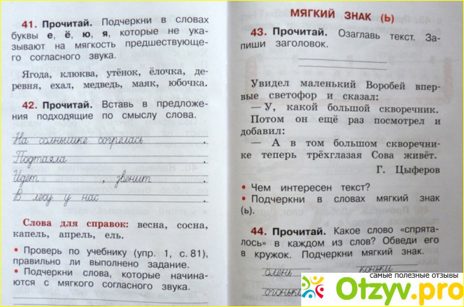 Внизу есть "слова для справок", напечатанные жирным щрифтом. Это сложные слова, которые дети еще не изучали, поэтому они могут вызвать затруднения у первоклассника.