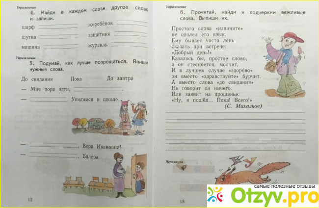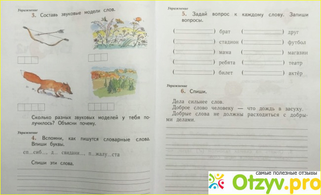 Очень удобно, когда рабочая тетрадь полностью совпадает с учебником. Ребенок быстро понимает предмет, так как в учебнике и в тетради он видит похожие задания. Да и сама рабочая тетрадь направлена на стимулирование развития умственной деятельности первоклассника.
