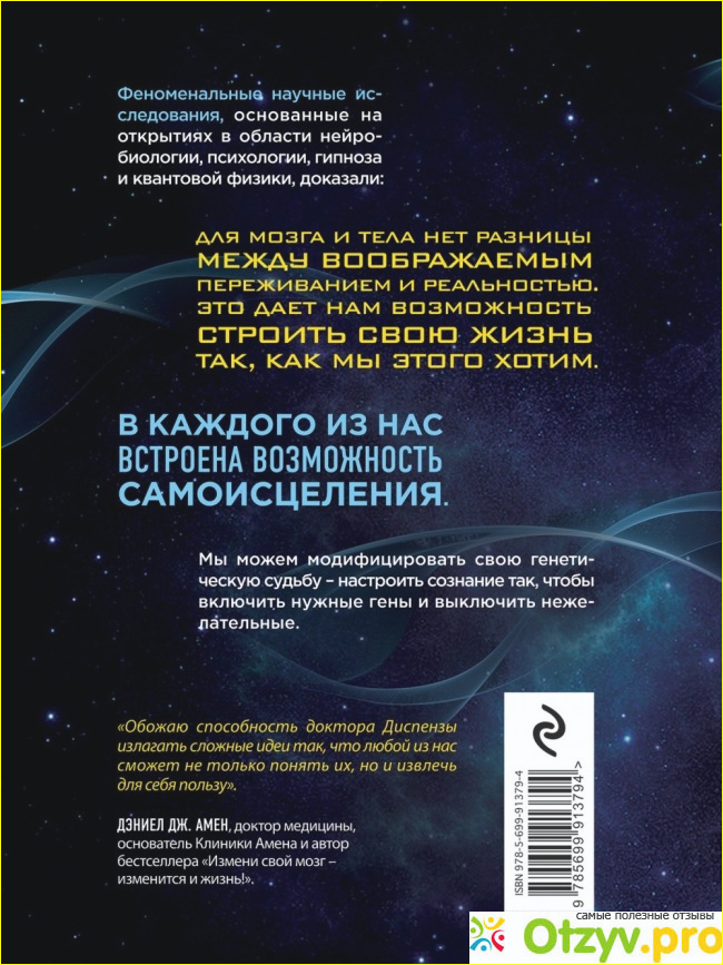 Сегодня хочу остановить свое внимание на книге, которая по заверениям создателей и внушительного количества читателей должна помогать человеку самостоятельно, лишь с помощью лазеек подсознания ключевым образом влиять на свою судьбу, и даже на самочувствие. Речь пойдет о книге нейробиолога Джо Диспенза "Сам себе плацебо: как использовать силу подсознания для здоровья и процветания".