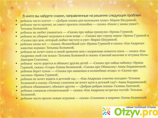 Тематик в книге вполне достаточно и все основные проблемы охвачены - умывание по утрам, нежелание кушать, спать и ходить в детский сад, а также боязнь темноты и постоянные обиды.