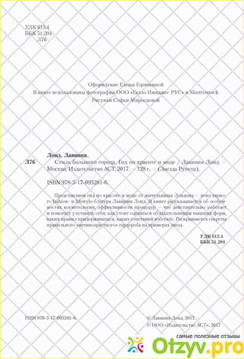 Лавинии Лонд - Стиль большого города. Гид по красоте и моде.После того как я познакомилась с книгой. А это вышло случайно. Ко мне зашла моя однокурсница-одногрупница Наташенька. Она у нас была модница. Прошу, сказала она, помоги мне с курсовой (ко мне часто обращались друзья за помощью. Одним было лень делать, одни не понимали как то или то делать или решать). Я не останусь в долгу, сказала она. У неё в руках была какая-то книжка. Я спрашиваю: Что за книжка? Я вообще люблю читать. Я книги просто поглощаю. Она и говорит, хочешь - почитай. Вобщем то была книга Стиль большого города. После прочтения книги, я на училась правильно делать укладку, макияж, сочитать одежду. У меня, в конце концов, появился стиль одежды)) Я себя полюбила. Стала более уверенной в себе. На меня начали заглядываться мальчики, приглашать на свидния. В общем жизнь моя изменилась. Книжка, действительно, очень полезна. Мне кажется, что особенно для подростков, которые ещё не определились и не научились ухаживать за собой. Книга действительно гид по красоте и моде. "Представляем гид по красоте и моде от жительницы Лондона - популярного fashion- и lifestyle-блогера Лавинии Лонд. В книге рассказывается об особенностях косметологии, эффективности процедур - что действительно работает и помогает улучшить себя, как стоит одеваться обладательницам пышных форм, каких правил придерживаться, каких сочетаний избегать. Раскрываются секреты правильного "антивозрастного" гардероба на примерах звезд", - такое общее описание книги. Но я бы сказала больше. Эта книга для тех девушек и женщин, которые, можно сказать, не уверенные в себе. Одной из таких была я. Когда-то. До того как мне в руки попалась эта замечательная книга. Всем рекомендую!! Читайте и меняйтесь.