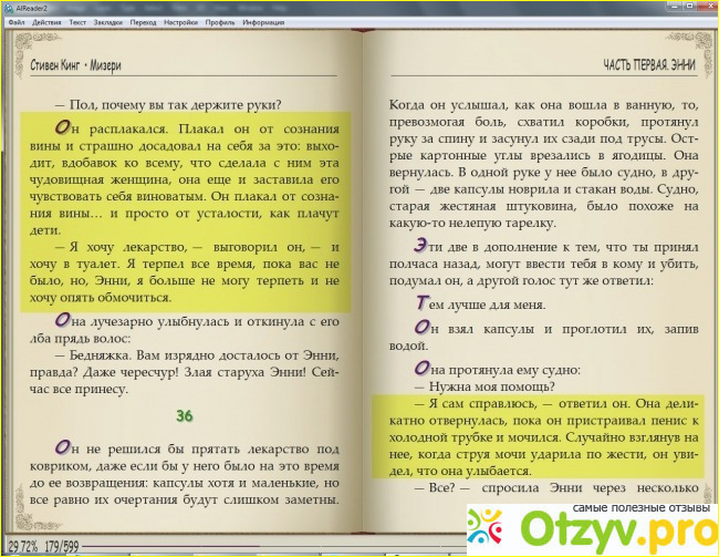 Косвенно автор учит, как искать идею и как жить с даром «ты писатель». Со всей книги мне не понравились только эпизоды из его книги «Мизери». То, что он писал, находясь в плену у Энни. Явно не мой стиль. Эти участки я старалась проскочить поскорее. Остальное же меня держало, и держало сильно. Отчасти роман заставляет переосмыслить некоторые моменты из своей жизни, взглянуть иначе на вещи и на чувства. Каждая строка пропитана страхом, некоторые момент действительно боязно читать, но всё равно невозможно оторваться от книги. Он обдумывает варианты, он в постоянно поиске, он хочет жить, и не хочет терпеть боль и бояться.