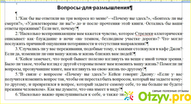 Примечательно, что в конце есть «Вопросы для размышления». Всего их 17. Они полностью соответствуют тексту книги и чаще всего предлагают самостоятельно ответить на заданные в книге вопросы.