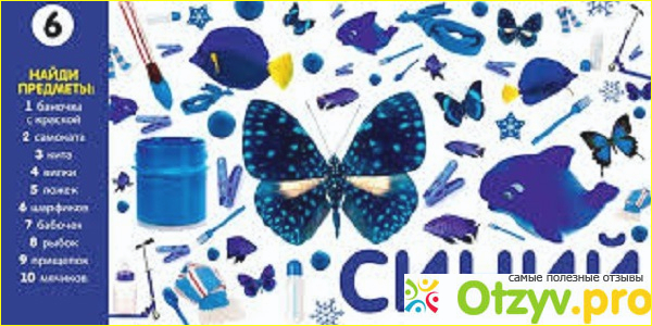 на каждой странице написано сколько чего нужно найти. Цифры тут идут от 1 и до 10. Таким образом ребенок запоминает, что вы говорите найти сначала 1 предмет, потом 2, затем 3, 4,5 и так далее. Он со временем поймет, и у него в памяти отложится, что данный счет идет один и тот же.