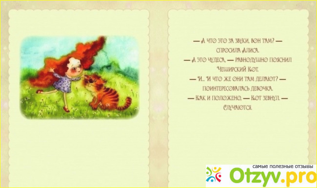 Как же выглядит блокнот с таим приятным названием? Сам блокнот не менее позитивный. Во-первых, удобный для хранения. Его размеры 139x104 мм. Такого размер блокнот удобно и хранить, и носить с собой, куда поместить вопроса не возникнет, ведь даже небольшая сумочка есть всегда. разворачиваем блокнот и вот еще один сюрприз - цветные страницы. На таких страницах записи можно делать не просто обычной ручкой, но можно использовать и карандаши или фломастеры. Разноцветные записи на разноцветных страницах похожи на красивый букет. Букет хорошего настроения, позитивного настроя. Продолжают его позитивные картинки. Посмотрите, например, на эту забавную девчушку и кота. Такие ярко рыжие волосы растрепаться могут только во время активных движений, свойственных непоседам, неугомонным людям. От них веет радостью и желанием действовать. А рядом их диалог, который напомнит о приключениях "Алисы в стране чудес".