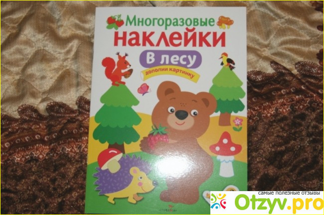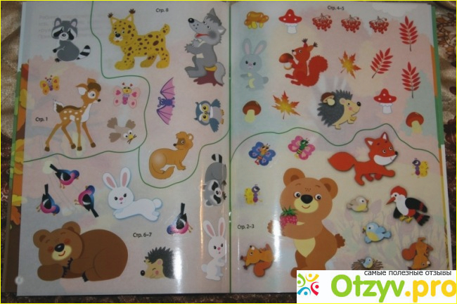 Книжка завлекает внимание и уже не хочется от нее оторваться! Книжка сама по себе не сильно толстая по количеству листов, но очень насыщенная цветами, иллюстрациями! Интересные картинки!!! Правильно подобранное название, именно развивающая книга, от слова развивать! Так вот именно этому и научит это издание вашего малыша!!! развивать мышление и логику! и главное , я уверенна, вашему ребенку будет очень интересно. Суть такова издания, что на картинках изображены лесные картинка, пейзажи в лесу, лесные жители и все, что связано с лесом, а посередине этой книги вклеен как бы вкладыш с наклейками!! На наклейках изображены зверюшки, и насекомые, и грибочки, листики всякие. Мой ребенок познакомился с этой книжкой совсем рано, так уж мне хотелось ее показать, но изучать мы стали, конечно же, позже, потому, что ребенок маленький то тянет картинки, то рвет, то еще что то. В общем осознанно мы начали именно заниматься, а не просто разглядывать картинки приблизительно в два года, и сейчас продолжаем заниматься! Ребенок очень очень доволен! Сам просит начать занятия, просит достать книжку. Ему очень интересно, он с удовольствием разглядывает картинка, то есть, иллюстрации, а у же с моей помощью , если не получается отклеить наклеечку самому(а это бывает, пальчики не всегда могут поддеть наклейку)он, или мы вместе, начинаем приклеивать! а! Что еще забыла сказать,-наклейки это многоразовые!!! То есть не нужно винить вашего ребенка, если он неправильно их приклеит, или приклеит не так, как бы вам хотелось! У ребенка полная свобода выбора, и он создает картинку, с помощью персонажей самостоятельно. Если не понравится та или ина композиция, то можно просто переклеить местами наклейки , и получится уже что то новенькое! Также в книжке есть изображения времен года(осень, зима, лето, весна, и время суток), что такжк положительно повлияет на знания и умения вашего малыша!! Хорошее издание помогает и выучить ребенку животных, и правильно подобрать зверушек или другие наклейки по смыслу. Ребенок занимается с радостью, не ерзает, не капризничает! Кстати есть и другие серии данного издательства!