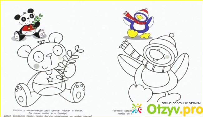 Издательство выпустило книжку, которая точно соответствует описанию. Линии действительно толстые , ребенок их хорошо видит. Хотя и не всегда у малыша получается придерживаться этих контуров, картинки получаются не очень размытыми после раскрашивания. Ребенок не только изучает мир животных, различает отличия разных частей туловища, но и одновременно повторяет цвета. Ведь животных надо раскрашивать непросто по своему желанию, а подбирая цвет, который предложен в книжке. Хотя наблюдаю по своему малышу и вижу, что ему часто нравиться нарушать это правило. Иногда он берет нужный карандаш, а иногда другой. Происходит это вовсе не потому, что не понимает цвет, просто у него вдруг возникает желание использовать совсем другой.