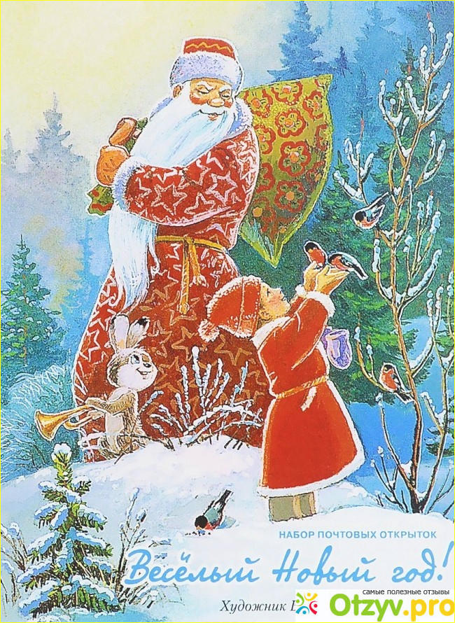 Помню, как еще маленькой девочкой я собирала открытки с его иллюстрациями. Чаще всего новогодние, они мне казались самыми яркими и красочными, как и сам праздник Новый год. Стало, как-то тепло от детских воспоминаний... Открытки состояли из набора в количестве 8шт. Я подумала, что если я куплю три набора, то сюрпризов хватит и для друзей и для родителей. Открытки пришли быстро и я принялась их изучать.