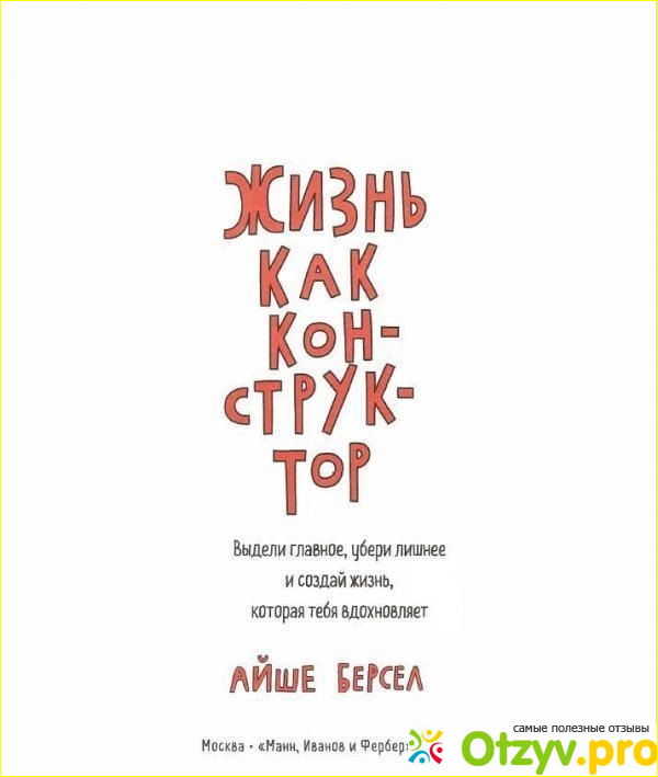 Хочу выделить, невзирая на все плюсы великолепной книги у нее так же есть свои ограничения, к примеру если вам необходимо организовать свой именно профессиональный график, либо сконструировать карьеру, может быть более подойдет книга «Отказываюсь выбирать» - Барбары Шер либо прочие работы из под её пера. «Жизнь как конструктор» Айше Берсел в первую очередь помогает сконструировать жизнь в гармонии, без каких-либо перекосов в ту либо иную сторону.