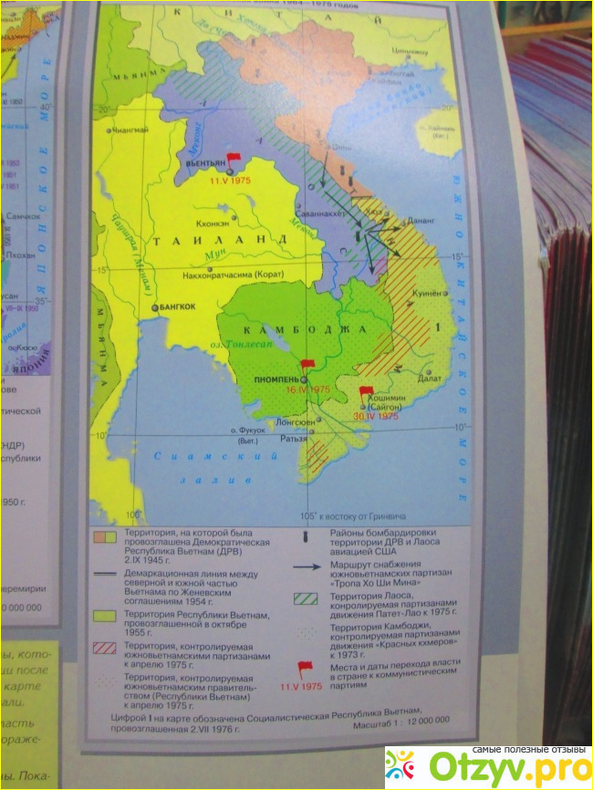 Война в Индокитае на рубеже 1960-1970-ых. Отмечены места бомбардировок и действий партизан Вьетконга.