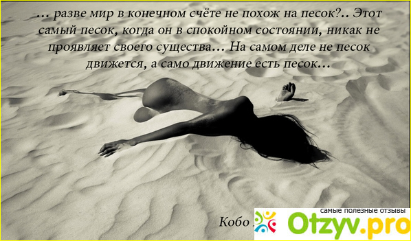 Я всё таки думаю, что автор описывал какие-то события из своей жизни, может он таким образом пытался загладить вину перед женщиной, ведь только она способна сделать мужчину счастливым, а он этого не понимал и всё время пытался выбраться из этого тягучего песка.
