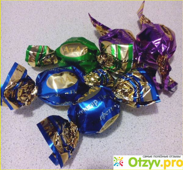 Конфетки округлой формы, текстурные, выглядят довольно привлекательно. Очень порадовал блеск глазури, что говорит о ее высоком качестве.
