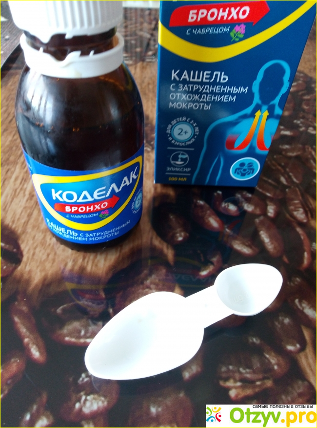 Итак называется онокрлелак бронхо. Выглядит оно как сироп. Имеет тёмную стеклянную банку и обязательно для его употребления мернуб ложку. Очень удобно. Данное средство прописать, даже когда вынуждено находишься не дома. А вообще коделак бронхо имеет двойную ложку в том смысле, что у неё две сиороны для взрослого человека и ребёнка.