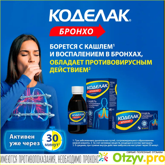 Разновидность Коделак бронхо говорит сама за себя. Этот препарат направлен на оздоровление бронхов: завершение кашля и защиту дыхательных путей.
