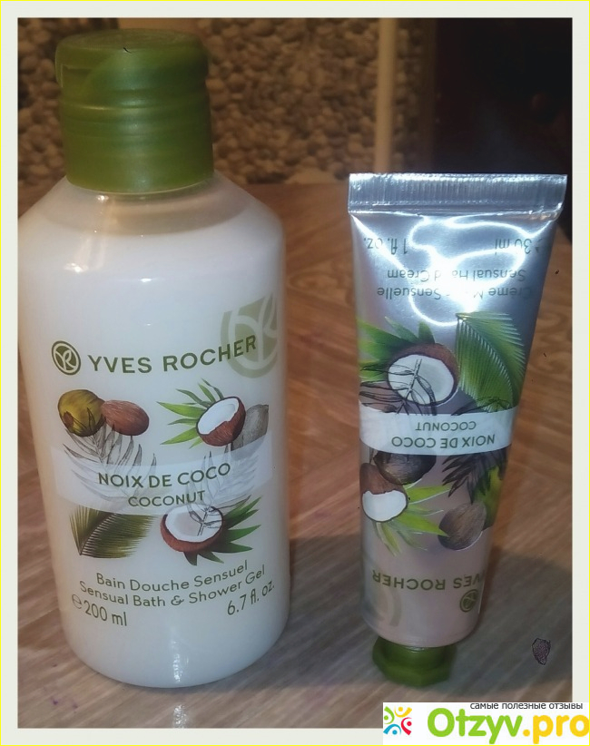 На 8 марта (хоть я и не отмечаю, поскольку считаю, что для удаления внимания не надо выбирать один день и отмечать его, внимание и забота - должны быть естественным и ежедневным, а уж про возникновение этого праздника молчу, но не об этом сейчас...) одногруппники подарили каждой девушке набор Ив Роше, в который входили крем для рук + гель для душа и ванны. Оба подарочка были с ароматом кокосового ореха. Он так мне понравился, что не могла про него не написать, хоть о косметике давно не оставляла отзывы.