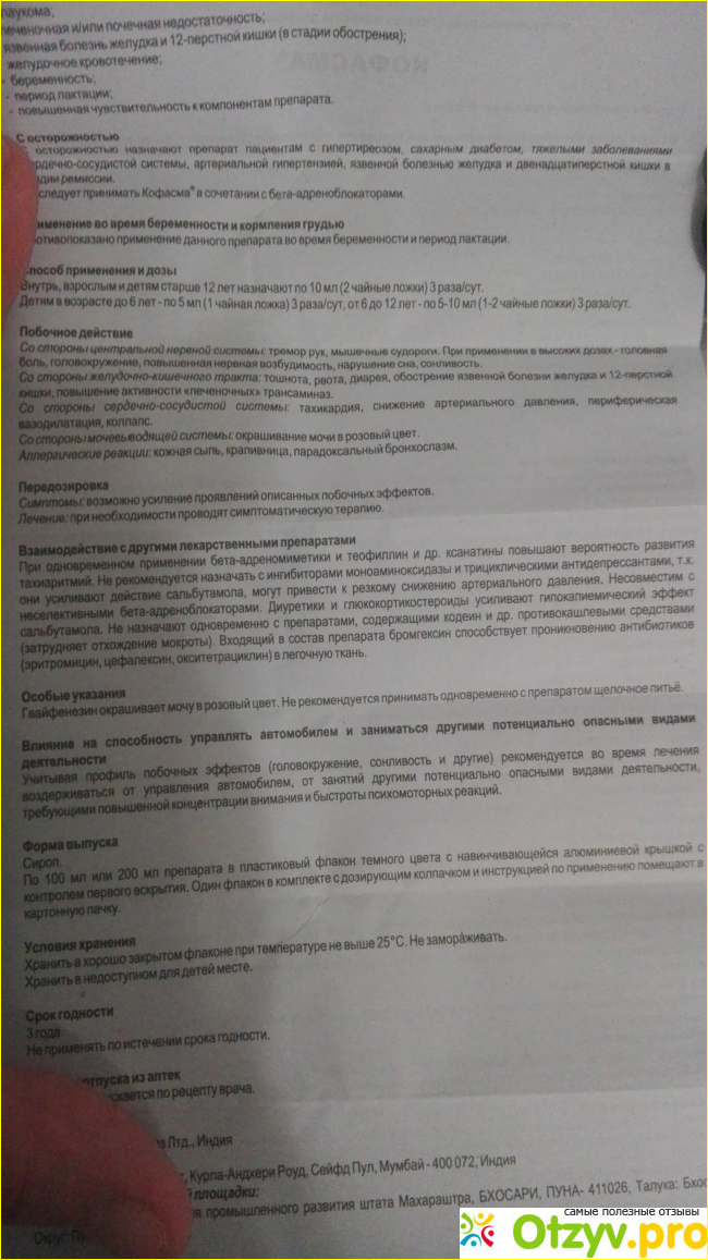 Лекарственный препарат Кофасма производится Индийской компанией АДЖИО ФАРМАЦЕВТИКАЛЗ ЛТД. Данный сироп предназначен для лечения комбинированного вида кашля. Что для больного является универсальным препаратом. Я, как мама, иногда не могу четко определить характер кашля. Утром вроде влажный - хорошо откашливается, а далее в течение дня кашель становится непродуктивным. Тут начинаются дилеммы. Поэтому часто прихожу к использованию препаратов, которые можно применить при двух видов кашля (сухой и влажный). Сироп от кашля Кофасма относится именно к таким препаратам.