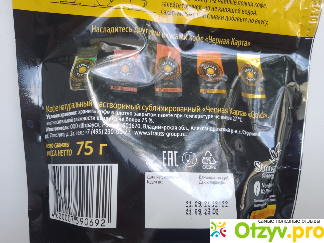 С обратной стороны можно ознакомиться с его описанием, другими вариантами кофе, сроками годности, информацией об изготовителе и прочей информацию.