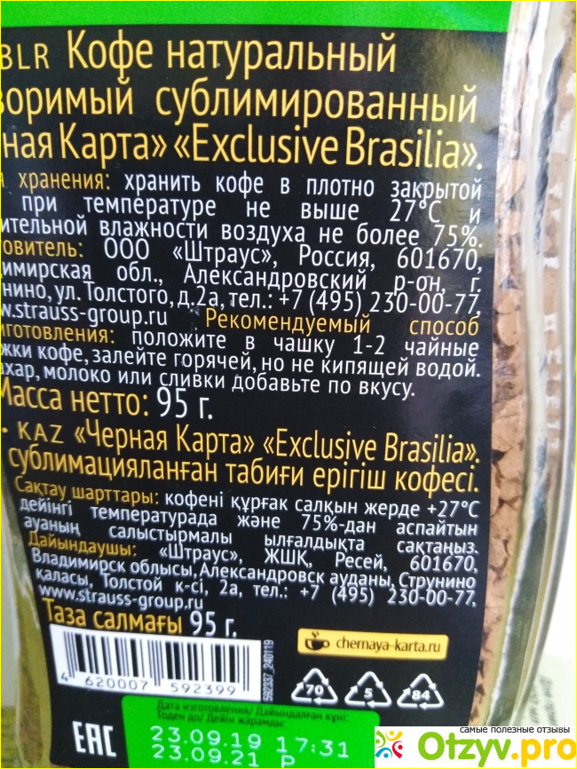 Кофе Черная карта растворимый Exclusive Brasilia |