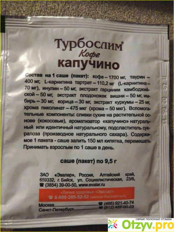 Когда вес сбросила в короткие сроки, (кстати, тоже не без участия моего любимого Эваларчика) , дабы не сорваться начала пить Турбослим Кофе Капучино каждый день по два - три пакетика саше, чтобы чувство голода утихомирить. Мне помогло. Не знаю, как он вообще может не помочь.