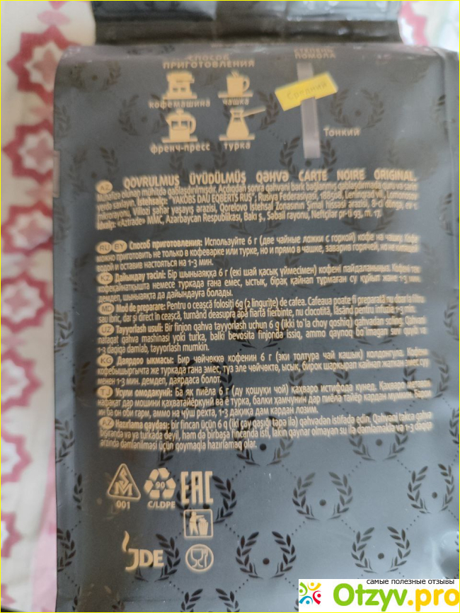 Взяла этот кофе на пробу пару месяцев назад, а теперь беру уже третью пачку. Упаковка интересного оформления, красиво смотрится на кухонной полке, к тому же герметичная. Благодаря не крупному помолу этот кофе можно варить по-разному.