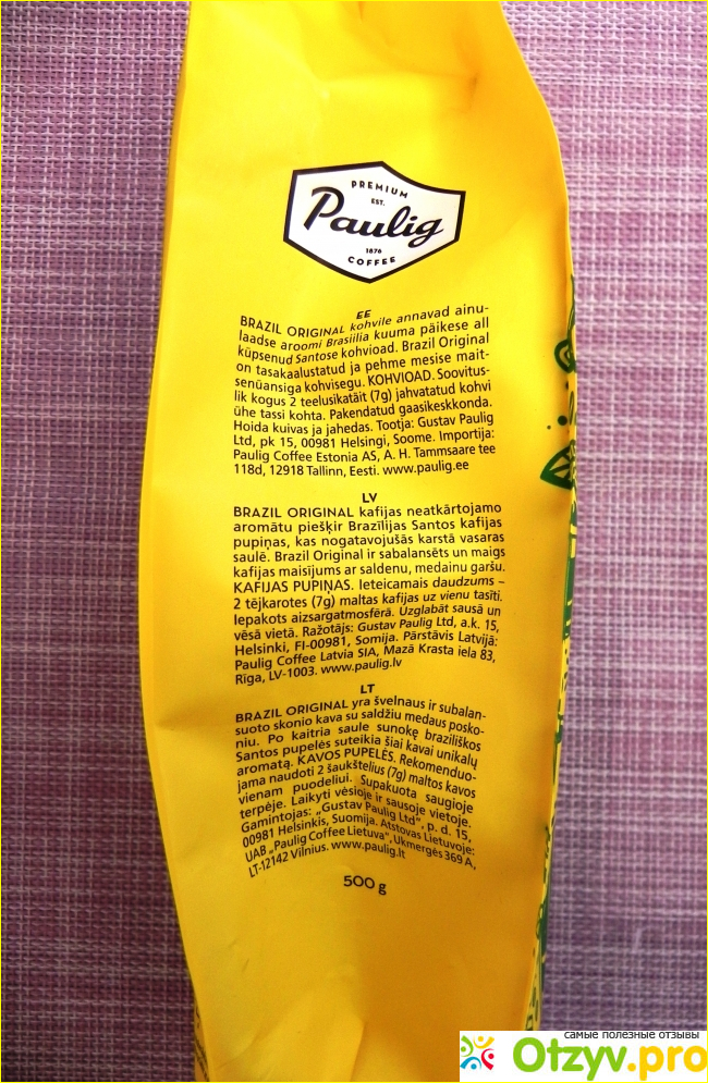 Поскольку мы живем близко к границе со скандинавскими государствами, проблем нет с приобретением различного рода продуктов, хотя сейчас практически в любом городе их можно заказать на дом. Наш кофе не стал исключением - Paulig Brazil привезен по заказу.