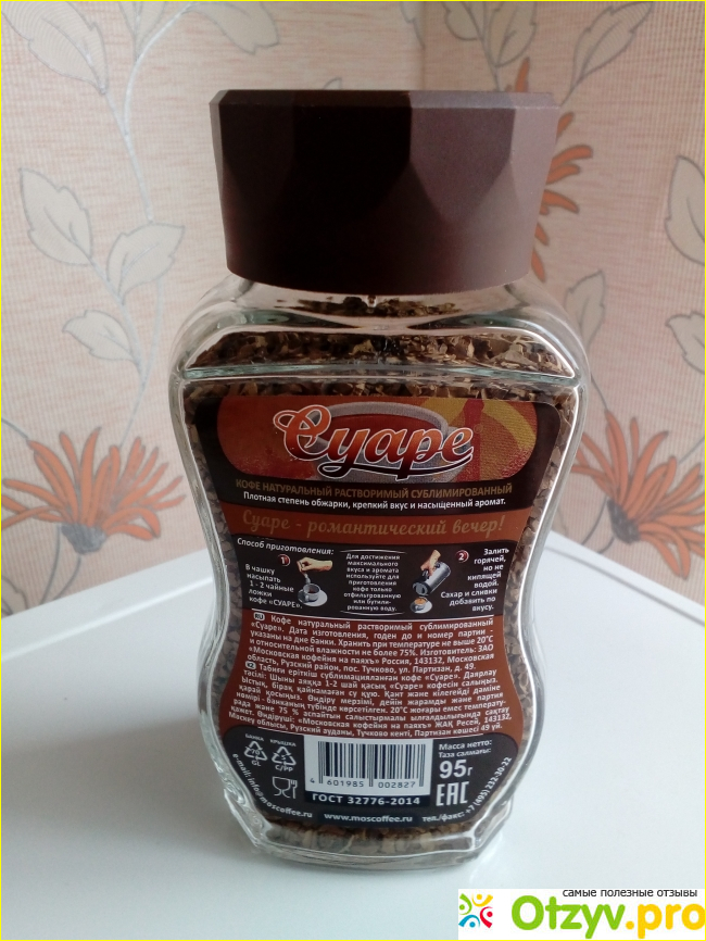 Рекомендую растворимый сублимированный кофе "Суаре" всем, кто предпочитает такой вид обработки кофе, это качественный продукт, производитель тоже надёжный и проверенный.