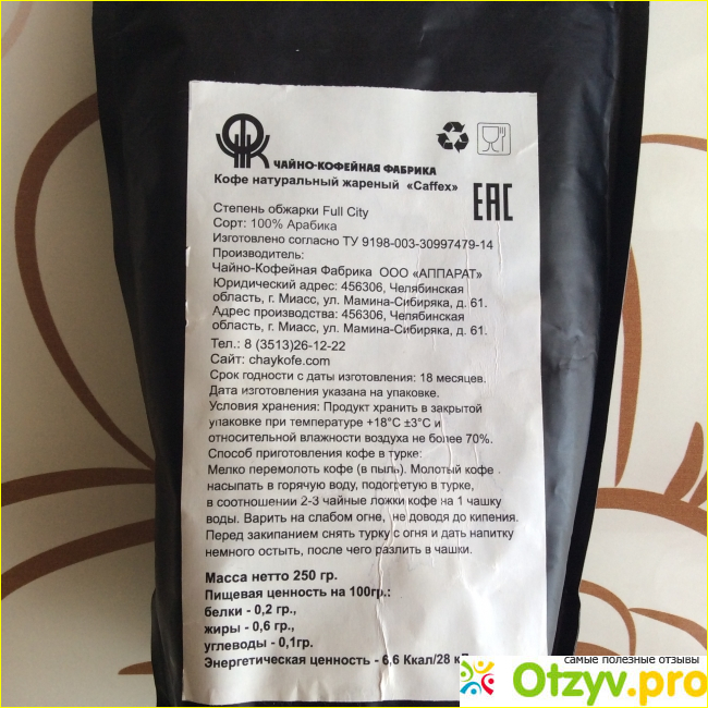 Упаковка данного кофе вполне стандартна. Она представляет собой герметичный пакет, устойчивый и удобный в хранении и использовании. Пакет имеет застёжку зип, которая сохраняет все вкусовые качества и аромат кофе при хранении, а также в упаковке есть вентиляционное отверстие, которое не дает кофе «задохнуться».