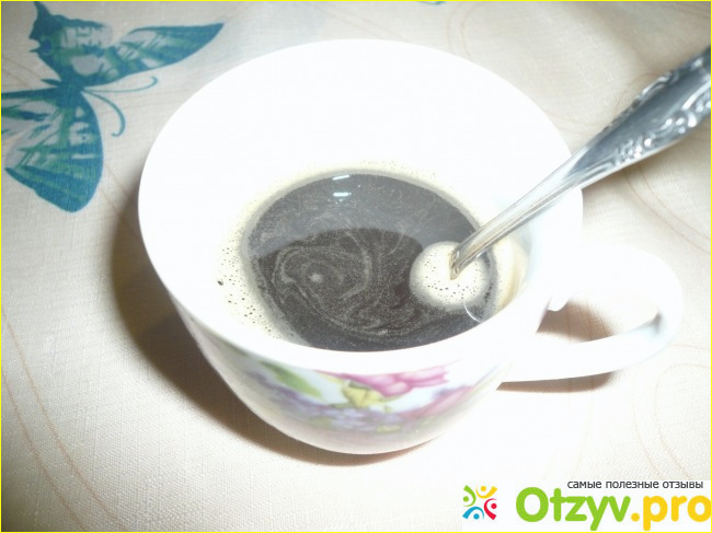 И от такого довольно светлого порошка я не ждала такой сильной горечи, какая оказалась в напитке. То ли очень пережженный, то ли что, но кофе очень горчит. И цвет в чашке получился слишком насыщенный, почти черный, а я ведь положила немного.