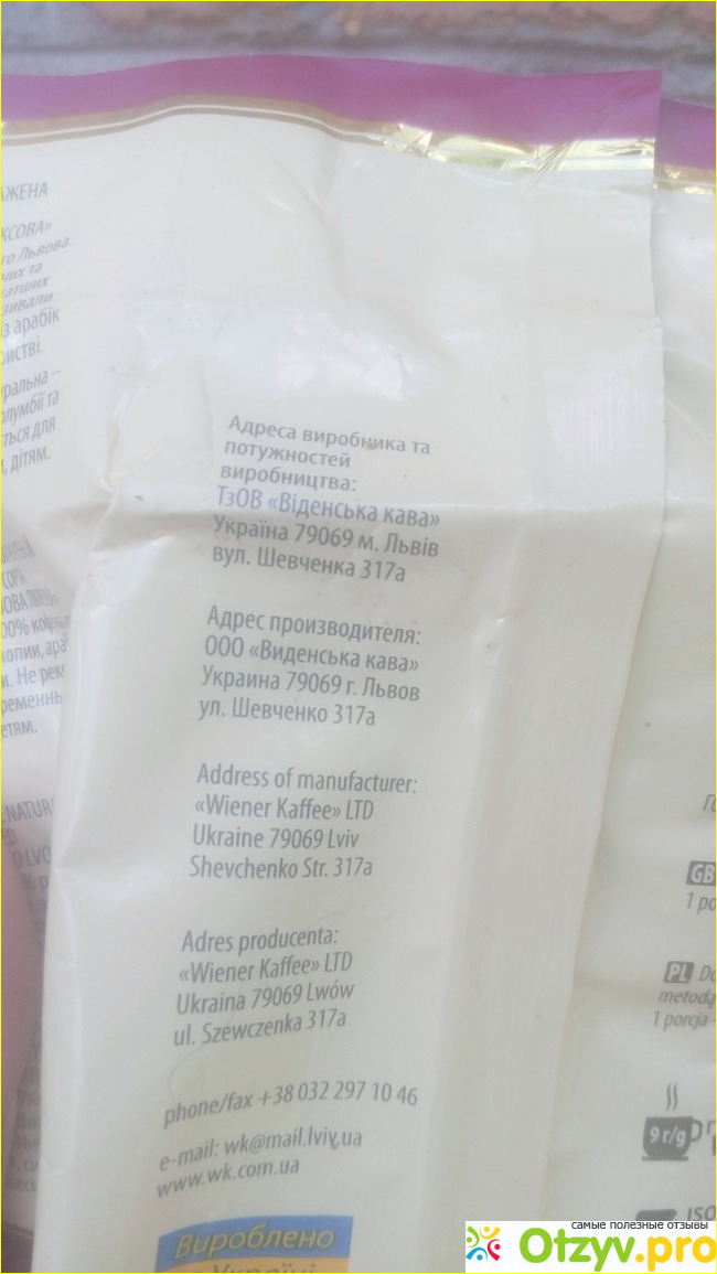 Изготовлен кофе во Львове, производитель "Виденская кава".