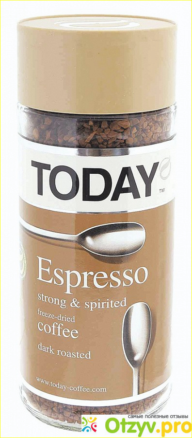 Очень хорошо себя зарекомендовал не так давно появившийся на прилавках супермаркетов английский бренд Today. Непревзойденное английское качество плюс удобный формат, расширенный ассортимент кофе (стеклянные банки и мягкая упаковка). Зеленый кофе, который содержит больше антиоксидантов (вещества с большим содержанием кислорода, помогают выводить вредные шлаки из организма). Черный кофе из колумбийской арабики, считающейся лучшей в мире. Для приготовления напитка используется уникальная технология : смешиваются обжаренные и не обжаренные зерна.