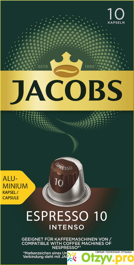 Однако чистой качественной робусты для капсульных кофемашин не существует, так что я недавно решила приобрести Jacobs Espresso Intenso - сочетание робусты и арабики. И мне очень понравилось.