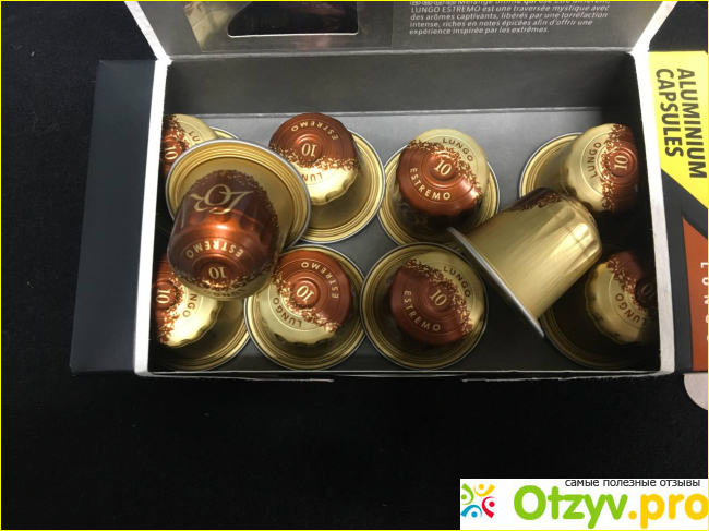 Называется Espresso Lungo Estremo. Почти самый интенсивный кофе в серии L'or. Его привкус пряностей понравился мне с первой же чашки. Позже, попробовав другие сорта, я снова возвращалась к этому Lungo Estremo и осознавала, что он нравится больше остальных.