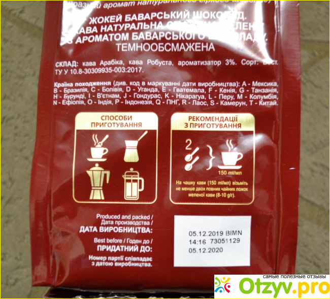 Что мы получили? Кофе нормальное по внешнему виду, никаких лишних частиц не нашли. Заваривается неплохо как в турке, так и просто чашке (быстрый способ). Запах приятный, действительно напоминает горький шоколад. Вкус аналогичный, не слишком мягкий, крепкий, я добавляла, как и всегда, ложку сахара. Единственное что разочаровывает в составе – ароматизатор.