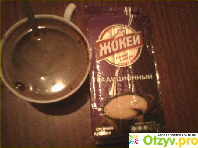 А какой кофе все же лучший? За все время я перепробовало множество видов данного напитка и с уверенностью могу сказать, что нерастворимый, млкого помола все же лучше, хотя зерновой самый что ни на есть натуральный, но его нужно предварительно перемолоть, обжарить. Так, что остановимся на мелком помоле. Вот жокей Традиционный как раз и есть представителем данного вида. При покупке обращает на себя внимание, плотная, герметичная упаковка-пачка с кофе чем то напоминает кирпичик. Емкость250 грамм. На пачке есть пометка, что кофе натуральный и сделан из лучших сортов, также уазан способ приготовления напитка и вся прочая полезность, ну и конечно сам изготовитель и экспортер. При вскрытии упаковки на волю вырывается густой кофейный аромат, напоминающий юг и пальмы, а также залитые солнцем плантации. В общем аромат обжареного кофе. Цвет достаточно однородный, хотя состав не совсем. Я бы не сказала, что помол однородный-встречаютс частицы мелие, а быват довольно крупные, удалось разглядеть неперемоланные крупинки не то кофейных зерен, не то мусора. Одим словом не совсем чистый продукт. При заваривании образуется довольно обильная пенка. Обожаю кофе с пенкой, напоминает чем то детство и вместо дозы кофеина придает заряд некого озорства. Пахнет закипевший напиток божественно, вся кухня наполняется густыми ароматами. Хотя состав уже готового напитка наталкиват на подозрения о довольно низком качестве. На поверхность всплывают довольно крупные частицы, напоминающие далеко не кофе, а остатки некой шелухи, мусора. Чувство такое будто продукт сделали из неких остатков от перемолки кофе для более качественного напитка. Вкус густой и насыщенный, довольно крепкий-не так уж и плох, отдат чем то терпким. Обжарка достаточно чувствуется, что придает некую пикантность, чуть-чуть подгоревшего-своеобразна изюминка для неповторимости. Осадок после выпивания остается естественно не однородный, в связи с уже вспоминающимся помолом. Гущи очень много. Но и она можт пойти на пользу. Ведь кофейная гуща может стать составной частью для приготовления домашнего натурального скраба.