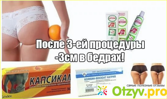 Наличие целлюлита иногда насколько влияют на самооценку женщины, что она прячет его под одеждой, а ведь наличие "апельсиновой корки", никогда не делало тело женщины красивой. Вот для тех, кто постоянно привык бороться с проявлениями целлюлита, есть очень хороший способ избавления от него и это обертывание при помощи Капсикама и кофеина. Применяя его, оно оказывает очень хороший позитивный результат и помогает устранять даже самую запущенную стадию его проявления, при этом это произойдёт намного быстрее, чем это можно ожидать.