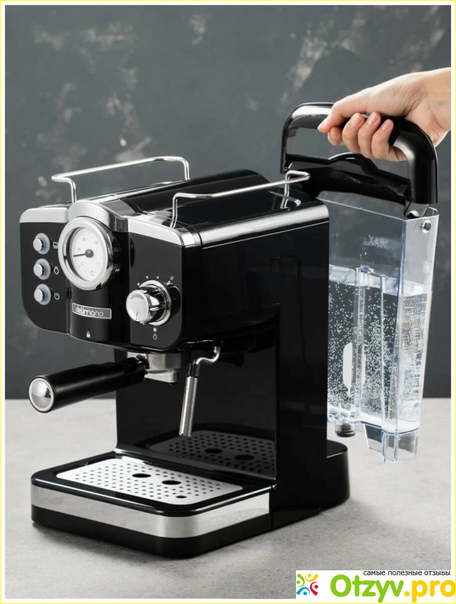 Управлять кофемашиной просто, и в нем нет ничего сложного: есть всего 3 важные кнопки, одна рукоятка для подачи пара. Бак для воды емкостью 1250 мл, чего достаточно для большого количества людей. Вся ваша семья или круг друзей будут довольны вашей кофемашиной, никому не придется сидеть в ожидании своей чашки кофе, никто не будет обделен вниманием. А чтобы капельки кофе не попадали на ваш любимый столик, для этого предусмотрен поддон для сбора капель, его снимают, моют и вставляют обратно.